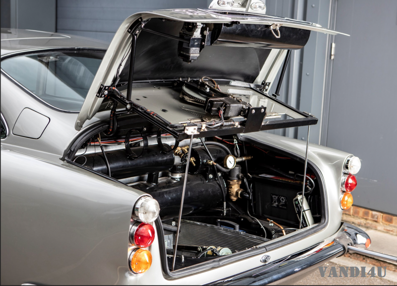 After their promo duty, the cars were mothballed by Eon Productions as the next Bond movies featured different cars. They were then sold to collector Anthony Bamford in 1970, who later sold chases no. DB5/2008/R to the owner of the Smokey Mountain Car Museum in Pigeon Forge, Tennessee. It was eventually sold again in 2006.This car then underwent a full restoration in 2012 by Roos Engineering in Switzerland-one of the few facilities specialized enough to be considered Heritage Specialists by Aston Martin themselves. The chassis and body were completely refinished. Most importantly for Bond fans, though, all of thirteen of the modifications originally designed by production designer Ken Adam have been refurbished to original spec.