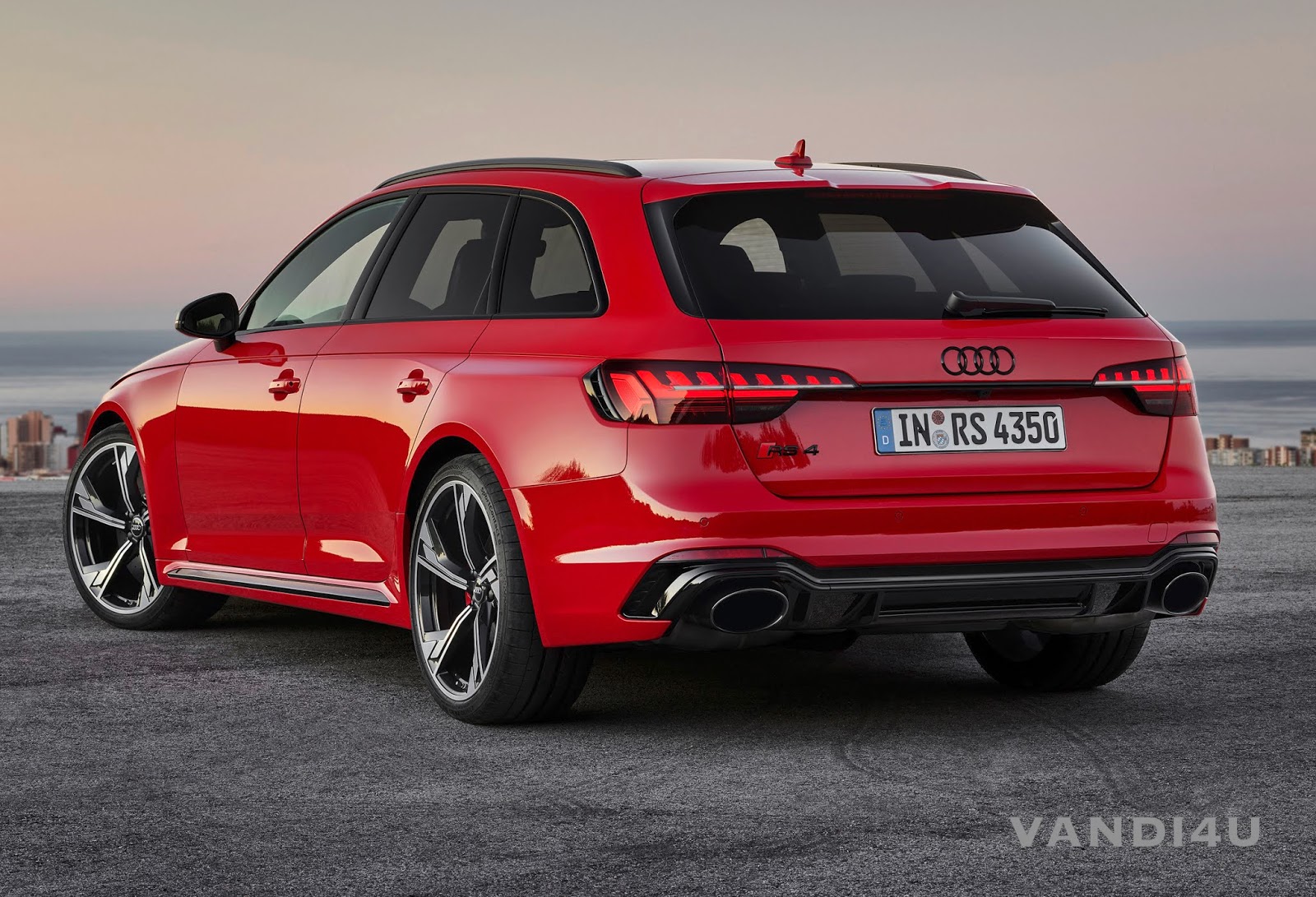 To give it a clean look, the Singleframe is designed without frame. The new egg crate grille with the RS4 emblem is inserted directly into the bumper with the large lateral air inlets and vertical flaps. The shape of  the LED headlights of the Audi RS4 Avant has also been redesigned. The optional matrix LED headlights with darkened bezels complete the revised appearance of the high-performance Audi RS4 Avant and differentiate it within the A4 family. The wheel arches are now 30 millimetres wider at the front and back as compared to the Audi A4 Avant.